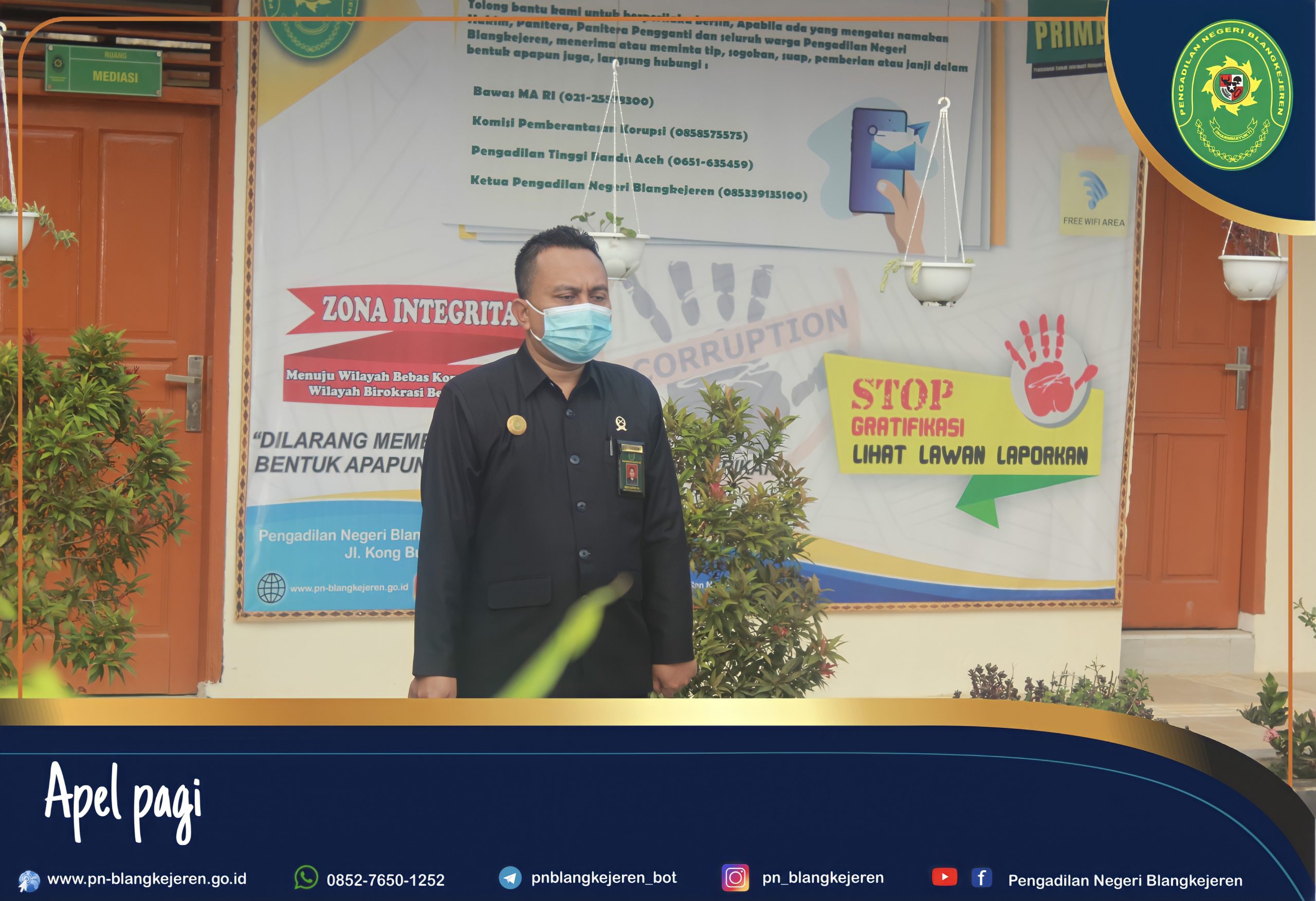 Blangkejeren-Senin, 10 Januari 2022 bertempat di halaman depan ruang Sidang Utama Pengadilan Negeri Blangkejeren telah dilaksanakan Apel Rutin Senin Pagi. Adapun yang menjadi Pembina dalam Apel tersebut adalah Bapak Robby Alamsyah, S.H., M.H., dan Pemimpin Apel adalah Bapak Radiansyah (Staff).