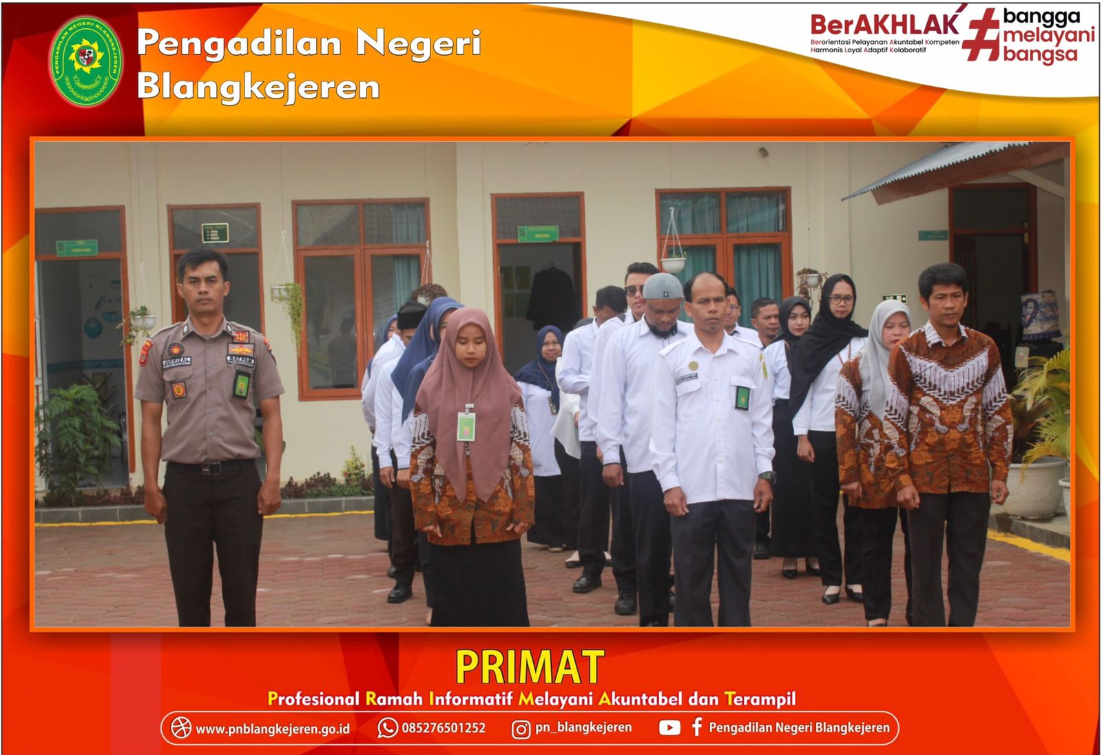 Blangkejeren-Senin, 13 Juni 2022, pukul 08:00 WIB bertempat di depan Ruang Sidang Utama Pengadilan Negeri Blangkejeren, telah dilaksanakan Apel Senin Pagi, Pembina Apel Bapak Kasimin, S.H. MC Apel Senin Pagi oleh Ibu Fauziah Rahmi, S.E., Pemimpin Apel oleh Bapak Zufrizal, serta Pembacaan 8 Nilai MA oleh Bapak Suib Tuib. Apel Senin Pagi ini dihadiri oleh Para Hakim, Panitera, Sekretaris, Panitera Muda, Panitera Pengganti, Jurusita, Para Kasubbag, Para Staf, CPNS dan Tenaga PPNPN Pengadilan Negeri Blangkejeren.