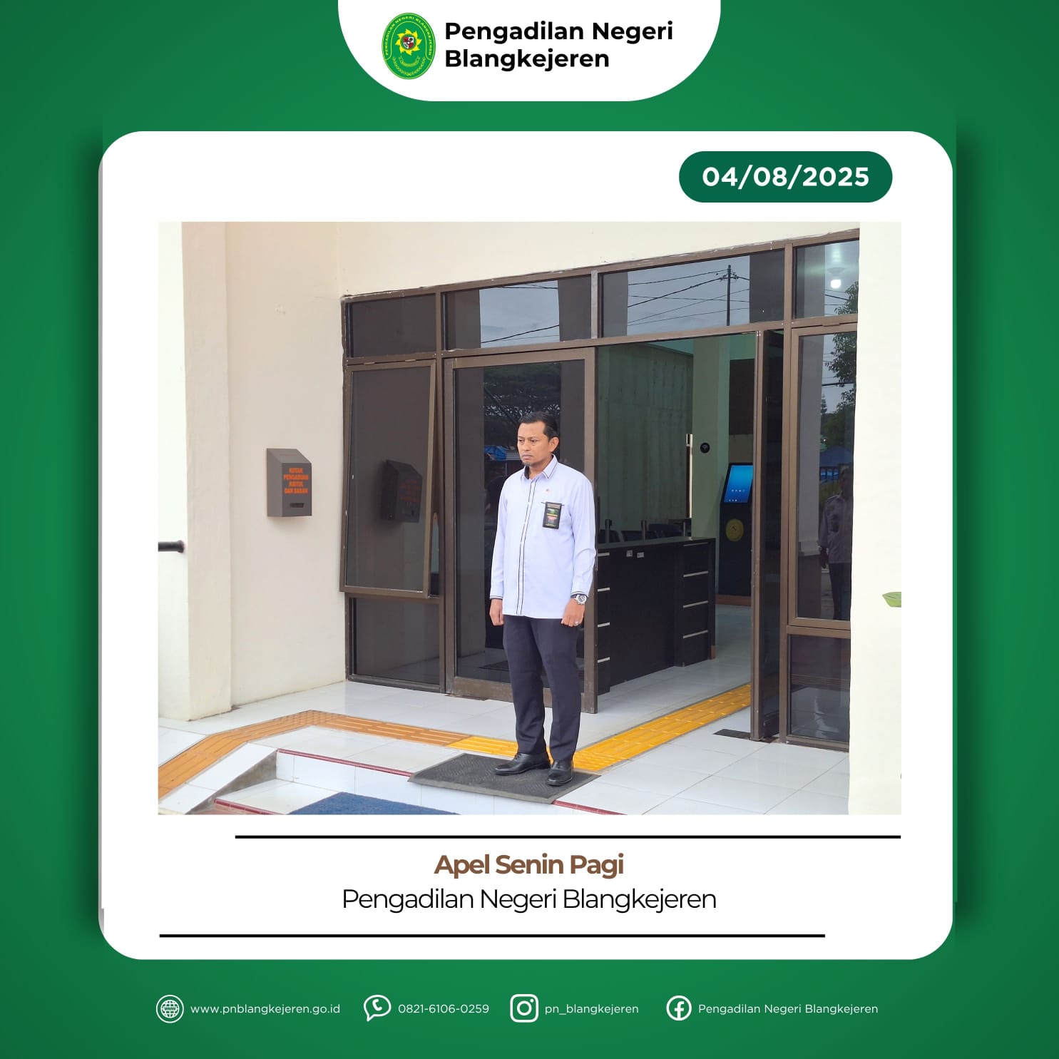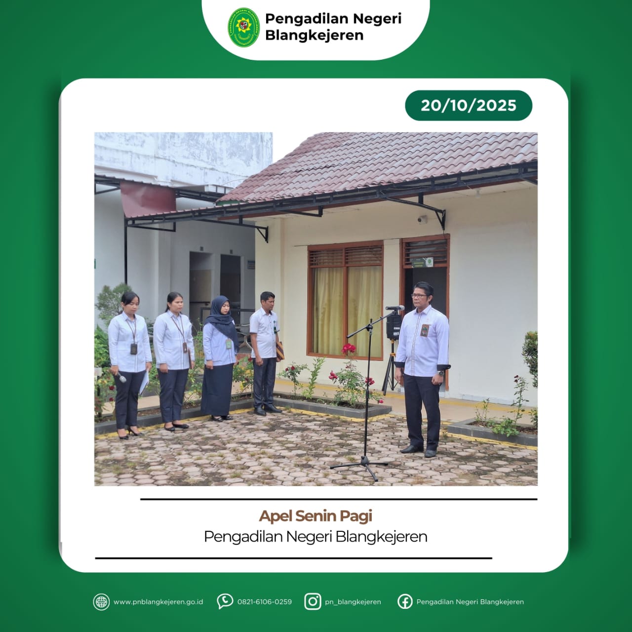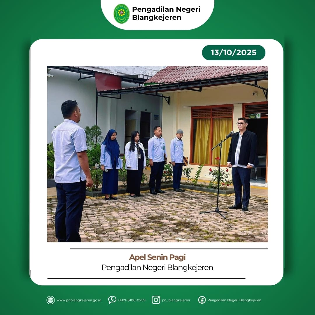 Blangkejeren-Senin, 20 Oktober 2025 pukul 08.00 WIB bertempat di depan Kantor Pengadilan Negeri Blangkejeren telah dilaksanakan Apel Senin Pagi, Pembina Apel oleh Ketua Pengadilan Negeri Blangkejeren Bapak Bob Rosman, S.H. Notulen Apel oleh Ibu Zahrina Ismah, A.Md. Pemimpin Apel Bapak Radiansyah. Apel Senin Pagi dihadiri oleh Wakil Ketua, Hakim, Panitera, Sekretaris, Panitera Muda, Para Kasubbag, Jurusita, […]