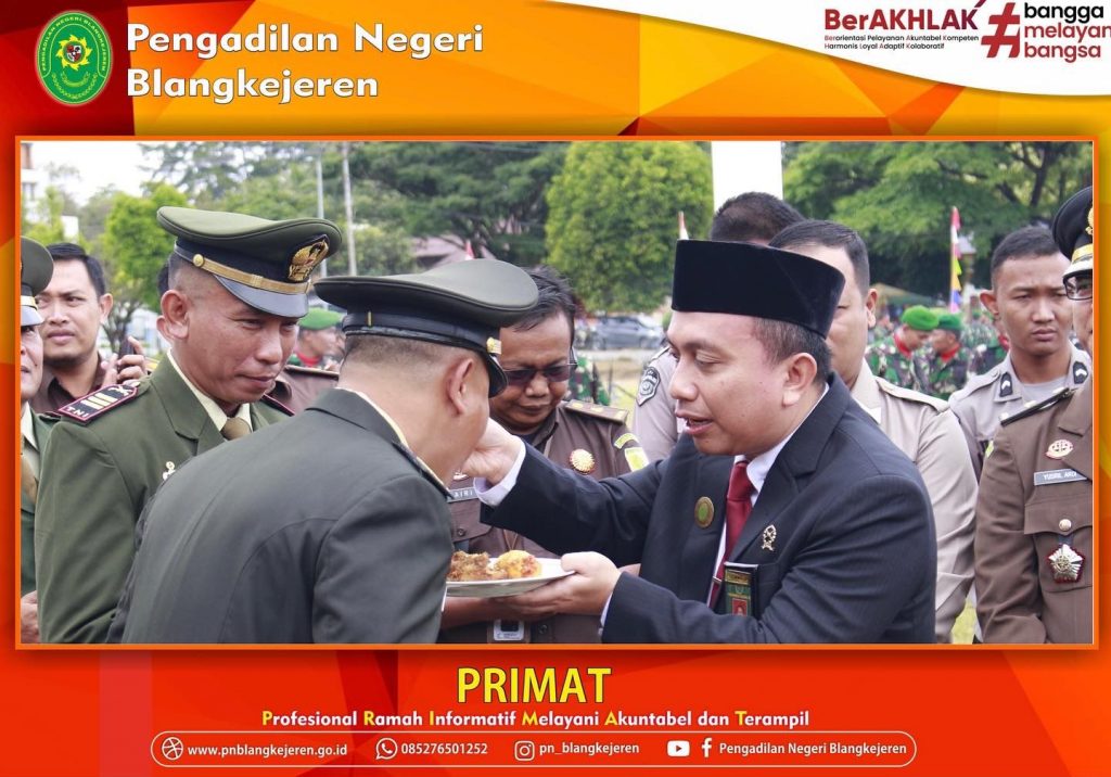 Blangkejeren-Rabu, 5 Oktober 2022 bertempat di Lapangan Pancasila Gayo Lues, Ketua Pengadilan Negeri Blangkejeren Bapak Robby Alamsyah, S.H., M.H. menghadiri undangan dari Komandan Dandim 0113 Gayo Lues Bapak Letkol Inf Krismanto, S.Pd. untuk menyemarakan HUT TNI Ke-77 tahun 2022, yang dihadiri oleh pasukan TNI Gayo Lues, Wakil Ketua Mahkamah Syar’iyah Blangkejeren, Kapolres Gayo Lues beserta jajaran, Kejaksaan Negeri Gayo Lues, dan Forkopimda Kabupaten Gayo Lues lainnya. Dengan mengangkat tema “TNI adalah kita” yang dapat diartikan bahwa TNI berasal dari bagian kita semua, masyarakat bangsa Indonesia. Acara HUT TNI Ke-77 berjalan dengan tertib, semoga TNI selalu menjaga kepercayaan masyarakat dan tetap kukuh sebagai alat pertahanan Negara Kesatuan Republik Indonesia kemudian dilanjutkan dengan potong tumpeng.