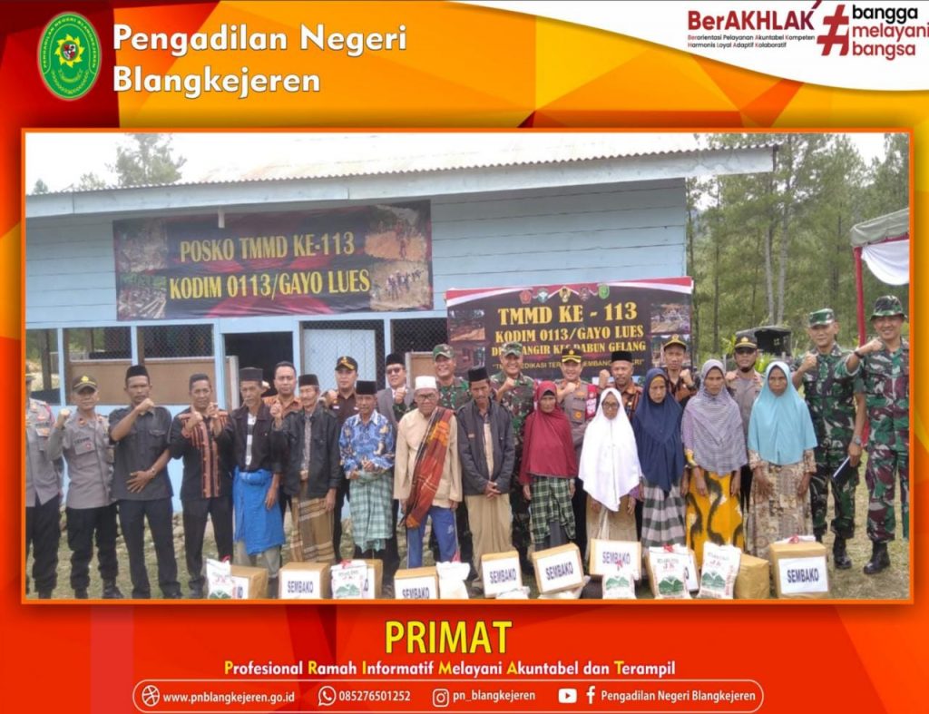 Blangkejeren-Kamis, 2 Juni 2022, pukul 09:00 WIB bertempat di Posko TTMD Ke-113 Kodim 0113/Gayo Lues. Ketua Pengadilan Negeri Blangkejeren Bapak Robby Alamsyah, S.H., M.H. menghadiri Kegiatan TMMD Ke-113 Kodim 0113/ Gayo Lues Desa Sangir Kecamatan Dabun Gelang, dengan Tema TMMD Dedikasi Terbaik Membangun NKRI, yang dihadiri oleh Kajaksaan Negeri Gayo Lues, Dandim 0113 Gayo Lues, Kapolres Gayo Lues, Asisten II, Camat Dabun Gelang, Kapolsek Blangkejeren, serta Jurnalis.