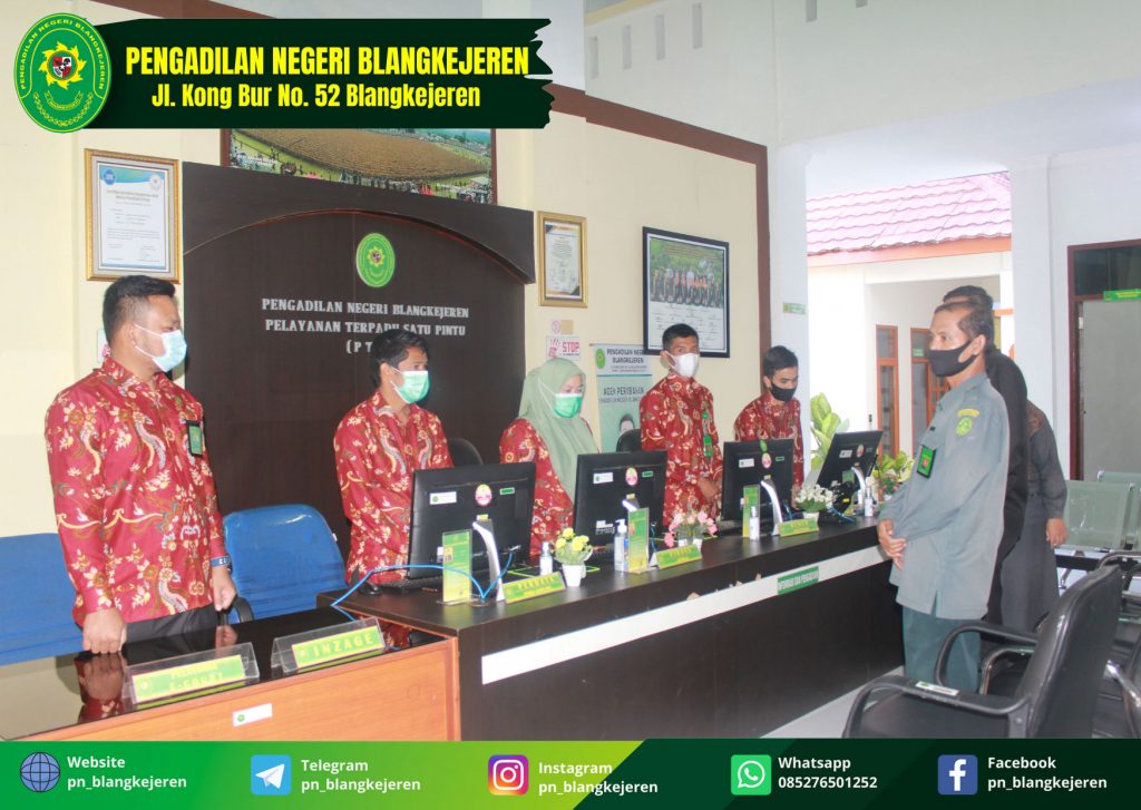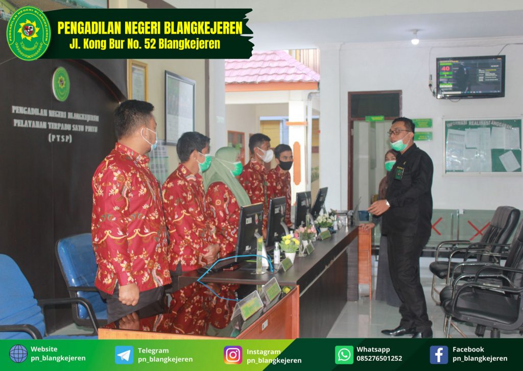 Blangkejeren, Senin 24 Mei 2021 diadakan pembinaan dan pengawasan setiap hari senin pagi terhadap petugas Pelayanan Terpadu Satu Pintu (PTSP) Pengadilan Negeri Blangkejeren. Kegiatan pembinaan dan pengawasan ini berguna untuk menguji mulai kesiapan petugas pelayanan sampai sarana dan prasarana yang menunjang