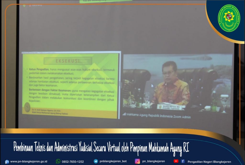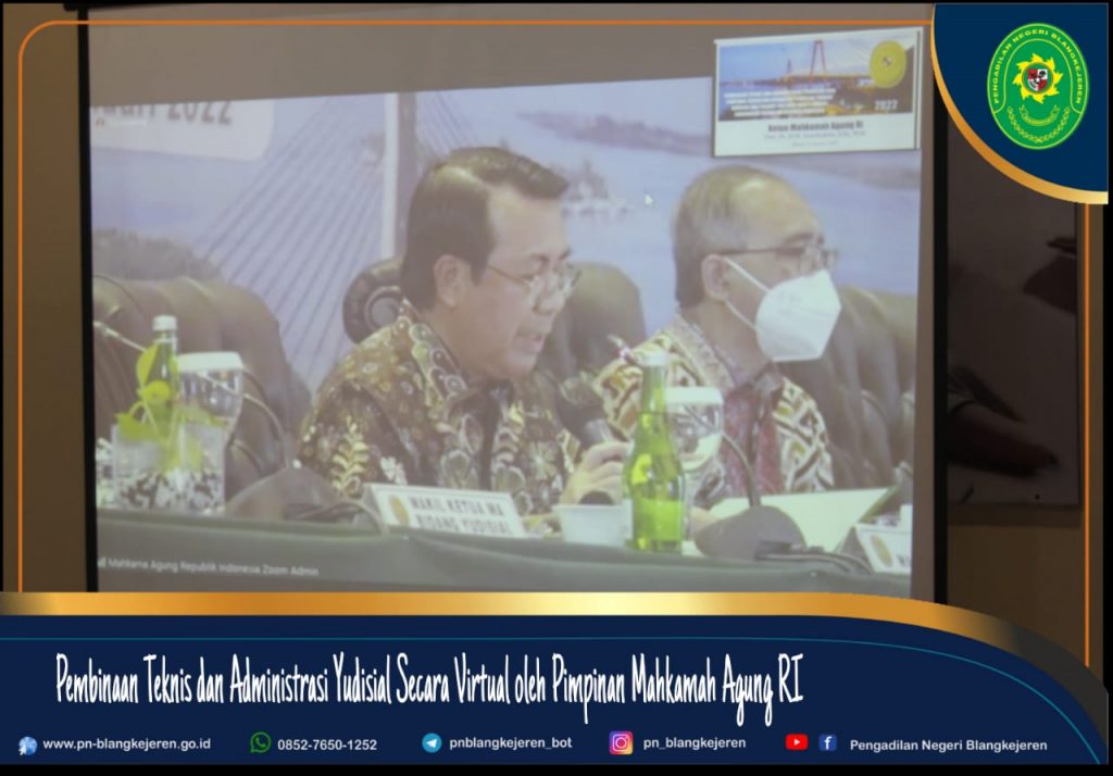 Blangkejeren- Kamis, 27 Januari 2022, Ketua Pengadilan Negeri Blangkejeren Bapak Robby Alamsyah, S.H., M.H. bersama dengan Para Hakim dan Panitera mengikuti Pembinaan Teknis dan Administrasi Yudisial Secara Virtual oleh Pimpinan Mahkamah Agung RI Bapak Dr. H. Muhammad Syarifuddin, S.H., M.H.