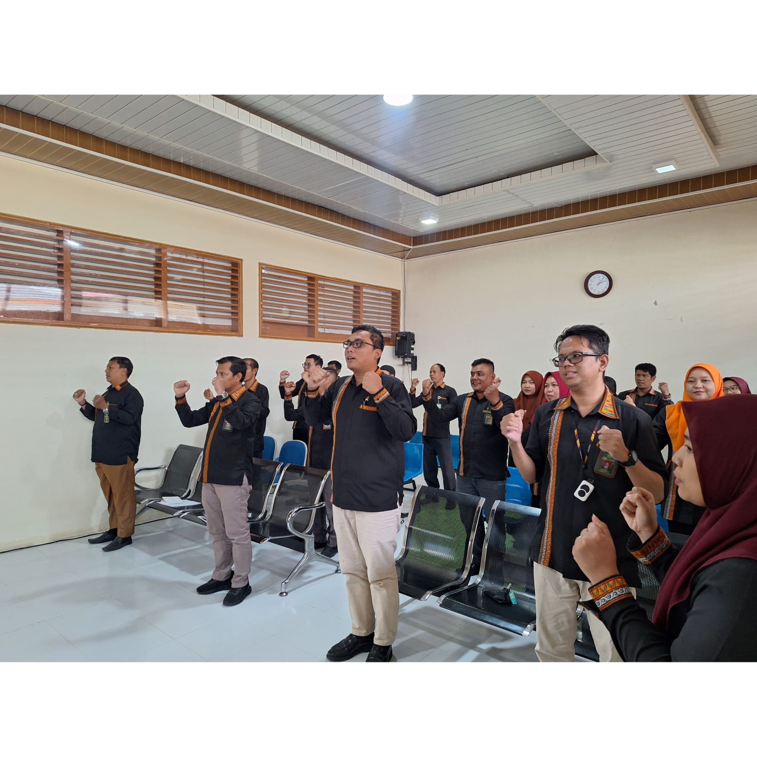 Blangkejeren – Kamis, 24 April 2025 pukul 14.00 WIB bertempat di ruangan Sidang Utama Pengadilan Negeri Blangkejeren telah dilaksanakan Rapat Bulanan Periode April Tahun 2025 yang dipimpin oleh Ketua Pengadilan Negeri Blangkejeren Bapak Bob Rosman, S.H. didampingi Wakil Ketua Bapak Dicky Wahyudi Susanto, S.H. dan diikuti oleh seluruh jajaran. Rapat diawali dengan menyanyikan lagu Indonesia Raya dilanjutkan dengan Hymne Mahkamah Agung RI. Selain membahas temuan di setiap bidang, dalam rapat bulanan kali ini juga dilaksanakan sosialisasi terkait beberapa PERMA dan juga SK Ketua Mahkamah Agung. Terakhir sekaligus menutup agenda rapat bulanan pimpinan rapat menekankan terkait Perma Nomor 7, 8, dan 9 tahun 2016, dengan tetap menjaga kedisiplinan, kerjasama dan mempertahankan prinsip 5R.