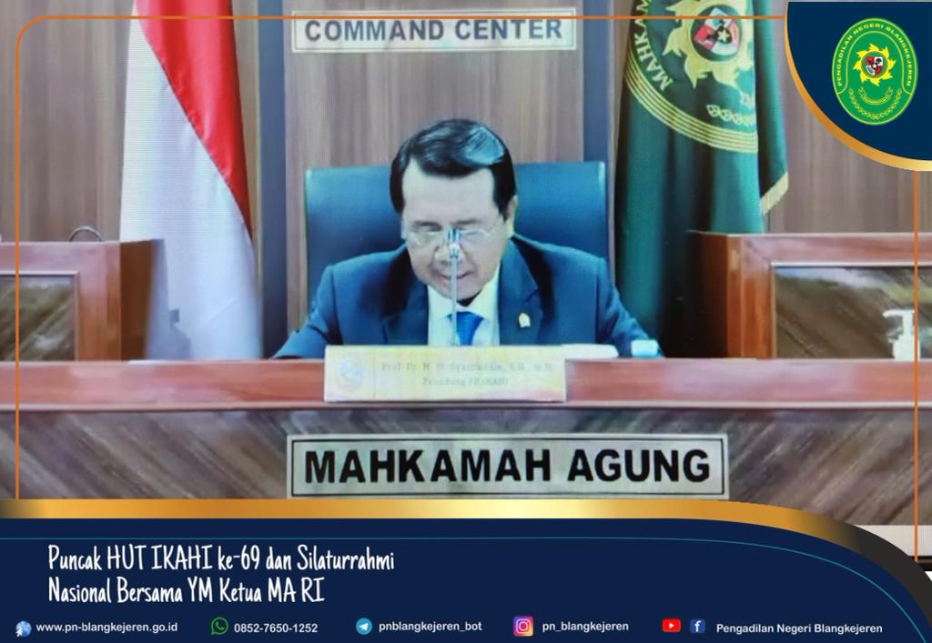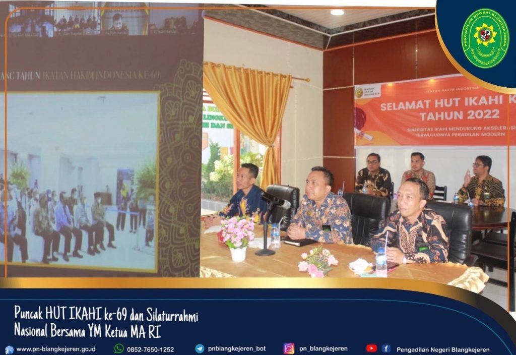 Blangkejeren, Selasa 22 Maret 2022 bertempat di ruangan Command Center PN Blangkejeren, Ketua PN Blangkejeren Bapak Robby Alamsyah, S.H.,M.H. didampingi Ketua MS Blangkejeren Bapak T. Swandi, S.H.I.,M.H. dan Waka beserta para hakim PN dan MS Blangkejeren memperingati Hari Ulang Tahun Ikatan Hakim Indonesia (IKAHI) ke-69 serta silaturahmi nasional dengan Yang Mulia Ketua Mahkamah Agung RI dan para pimpinan IKAHI secara virtual. Acara ini juga diikuti oleh seluruh Pengurus Pusat (PP) IKAHI, Pengurus Daerah (PD) dan Pengurus Cabang (PC) IKAHI di seluruh Indonesia.
