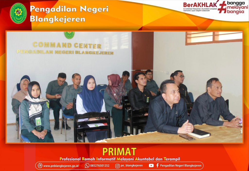Blangkejeren-Selasa, 8 November 2022, pada pukul 09.30 WIB bertempat di Command Center Pengadilan Negeri Blangkejeren, mengikuti Zoom Meeting Sosialisasi Sinergi Penyelenggaraan Program Jaminan Kesehatan (JKN) – Kartu Indonesia Sehat (KIS) Oleh BPJS Kesehatan. Sosialisasi ini dihadiri oleh Ketua Pengadilan Negeri Blangkejeren Bapak Robby Alamsyah, S.H., M.H. Para Hakim, Panitera, Sekretaris serta seluruh Pegawai Struktural dan Fungsional di Pengadilan Negeri Blangkejeren.