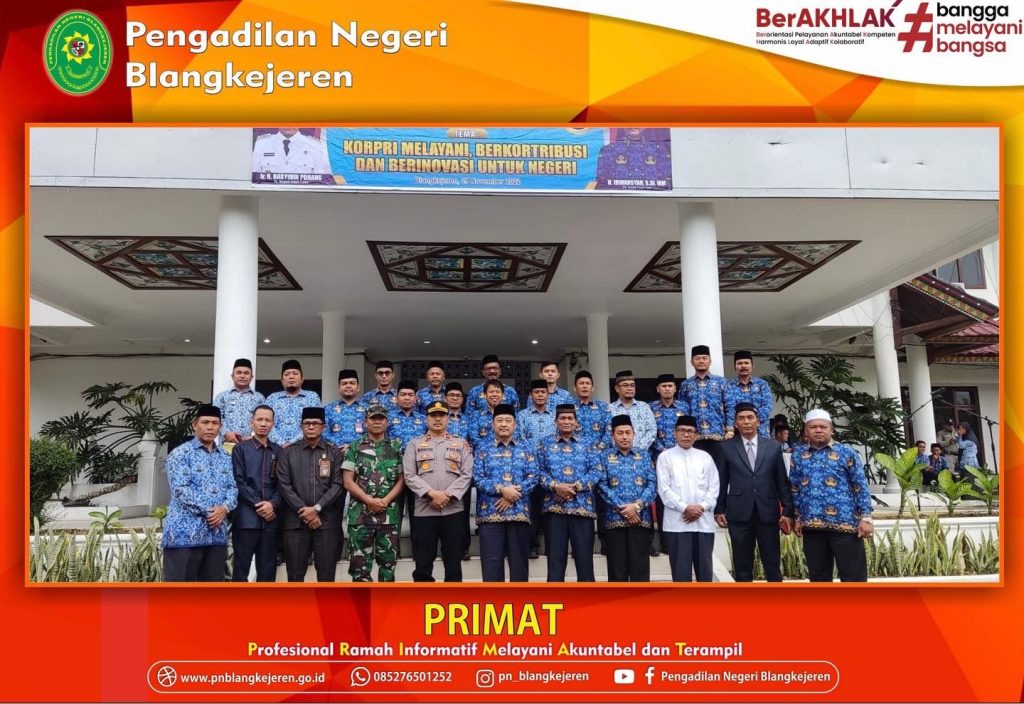 Blangkejeren-Selasa, 29 November 2022 pukul 08.30 WIB bertempat di Kantor Bupati Gayo Lues, Wakil Ketua Pengadilan Negeri Blangkejeren Bapak Bob Rosman, S.H. menghadiri upacara Peringatan Hari Ulang Tahun KORPRI ke 51 Tahun 2022, acara ini dihadiri oleh Forkopimda dan Kepala SKPK di wilayah Kabupaten Gayo Lues. Bapak Ir. Bambang Waluyo (Asisten III Administrasi dan Umum Kabupaten Gayo Lues) sebagai Inspektur upacara, dimana dalam arahannya beliau menyampaikan 4 program utama hasil Musyawarah Nasional KORPRI IX (ke sembilan), yakni :